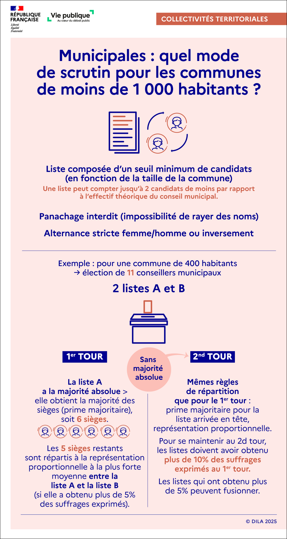 Le site Vie-Publique.fr présente le mode de scrutin dans les communes de moins de 1 000 habitants .