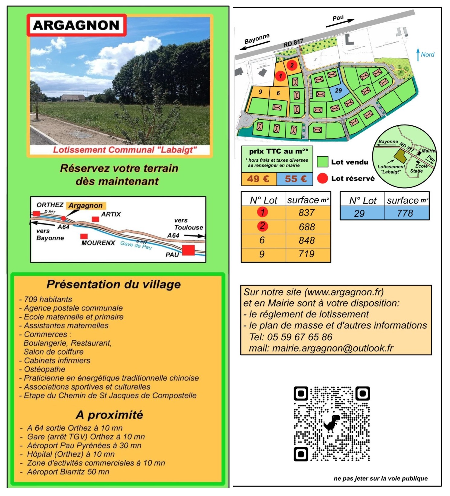 Flyer du Lotissement Communal Labaigt (lots vendus ou réservés)